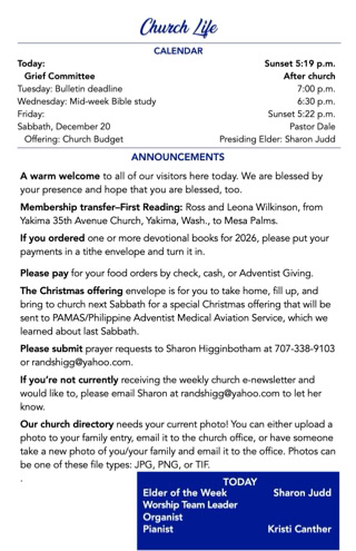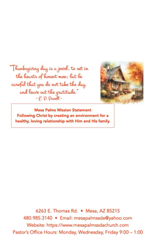 Mesa Palms sincerely apologizes for the absence of a digital copy of the bulletin this week. Rest assured, we will do our best to provide one next week.