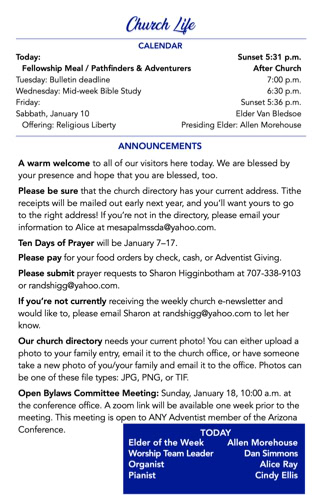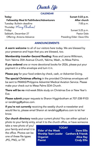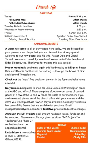Mesa Palms sincerely apologizes for the absence of a digital copy of the bulletin this week. Rest assured, we will do our best to provide one next week.